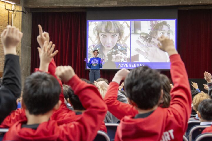Today our Junior School was delighted to welcome the author M. G. Leonard for a special talk on her inspiring work. It was a pleasure to host not only our own pupils but also pupils from local junior schools, who joined us for the opportunity to hear from a writer whose books are enjoyed by so many young readers. Leonard spoke warmly about the inspirations behind her stories, particularly her lifelong fascination with animals and insects. She shared photographs of herself observing beetles and explained how her curiosity about the natural world often sparks ideas for her writing.